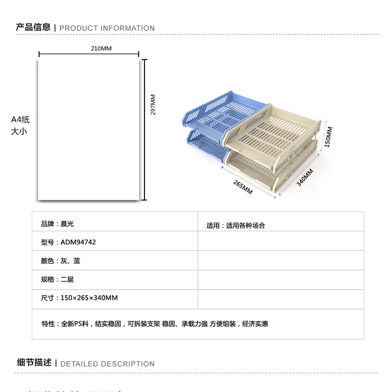 晨光(M&G) ADM94742 二層文件盤文件欄文件架文件座 藍(lán)色