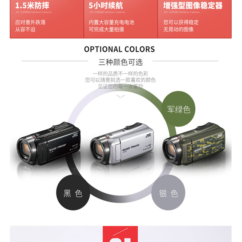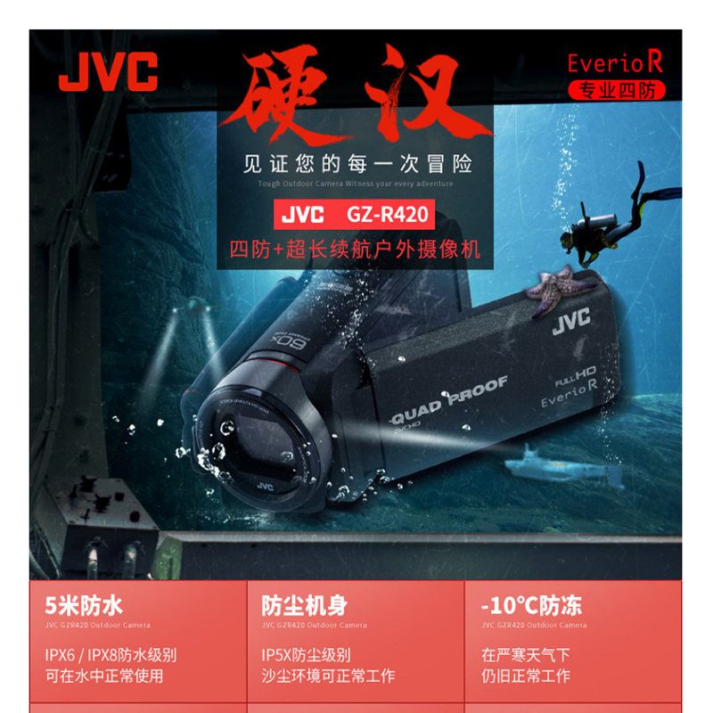 JVC(杰偉世) GZ-R420 SAC四防高清攝像機DV 家用戶外運動 (銀色 可擴展鏡頭)