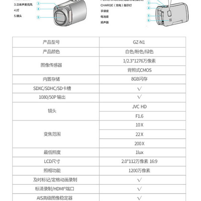 JVC(杰偉世) GZ-N1 GAC高清閃存攝像機(jī) (綠色)