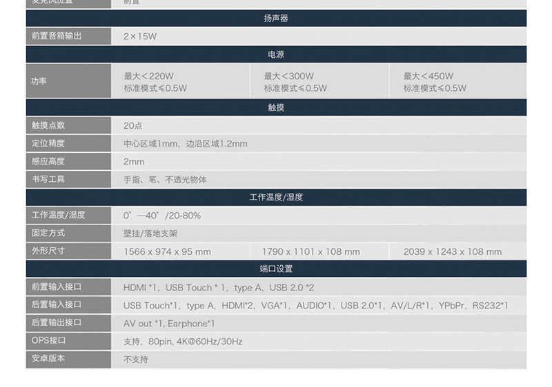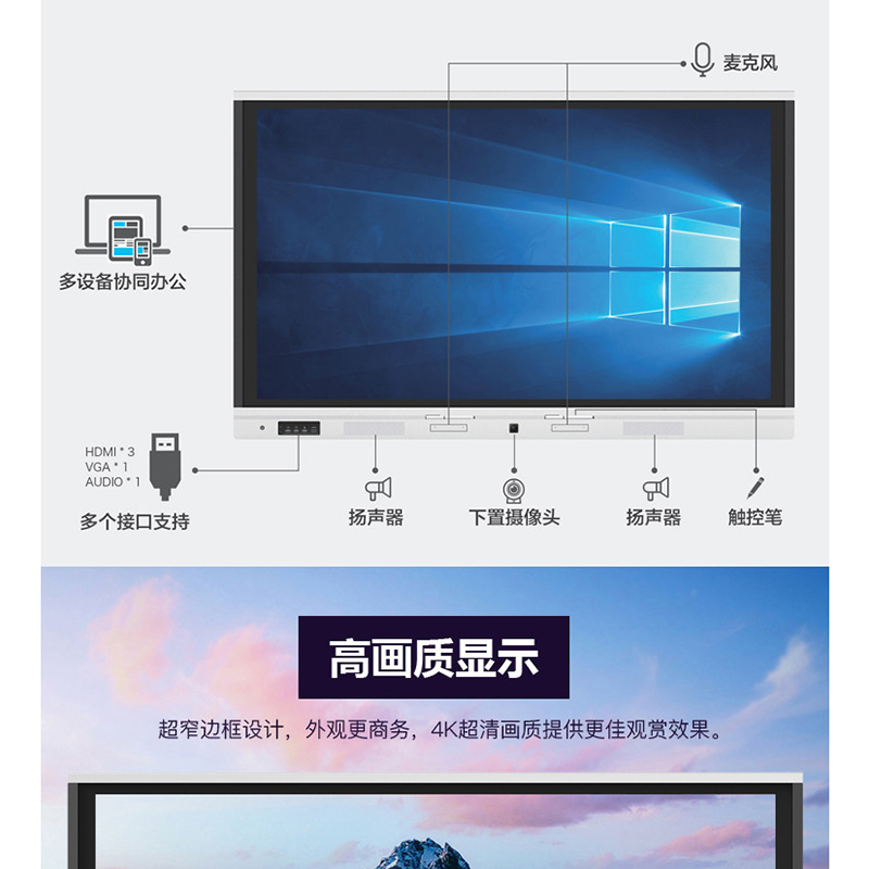 屏幕分辨率3840*2160,20點(diǎn)紅外觸控(平蛙技術(shù)),鋼化玻璃,壁掛支架,內(nèi)置拾音麥、4K高清攝像頭,windows系統(tǒng),I5 CPU,8G內(nèi)存,256G存儲(chǔ),newline助手軟件 ?
