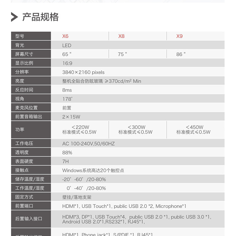 • 65英寸,4K屏體 75英寸,4K屏體 86英寸,4K屏體