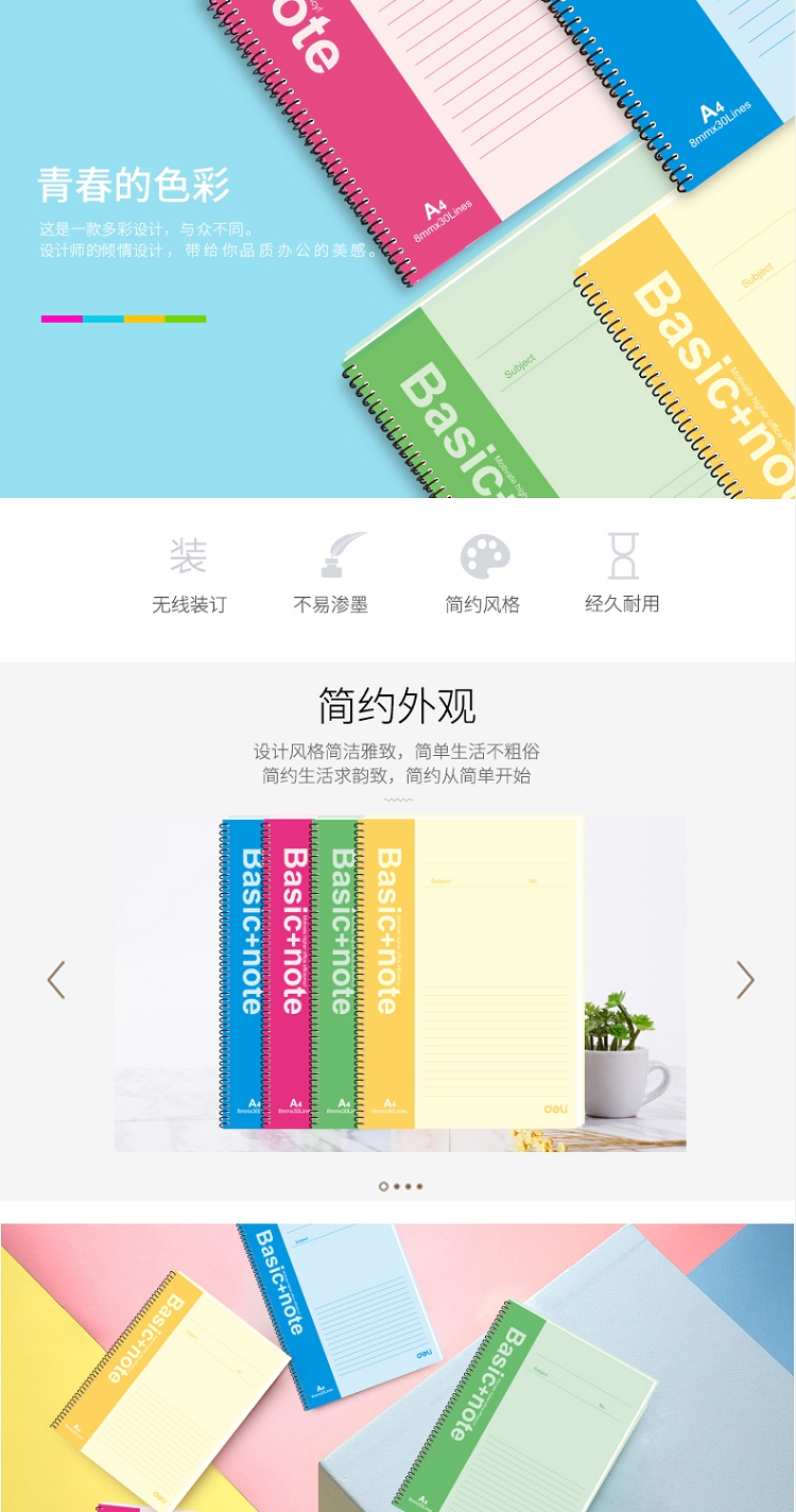 得力(deli) 7693 螺旋裝訂本 記事本 B5/60頁 6本裝