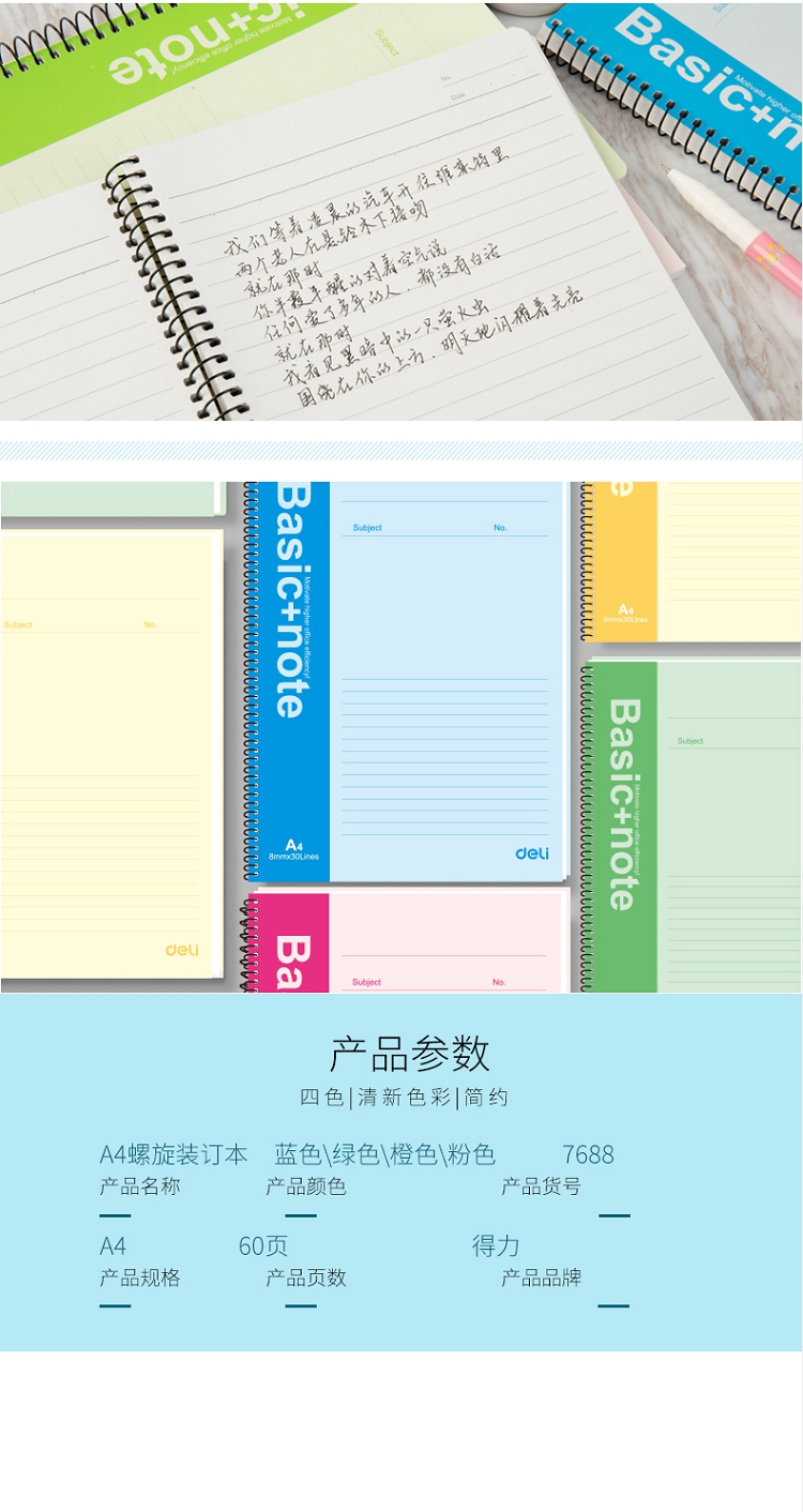 得力(deli) 7688 螺旋裝訂本 記事本 A4/60頁 (包)