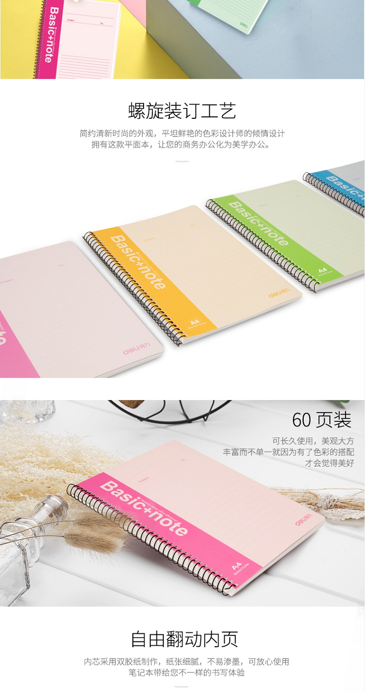 得力(deli) 7688 螺旋裝訂本 記事本 A4/60頁(yè) 10本/包(包)