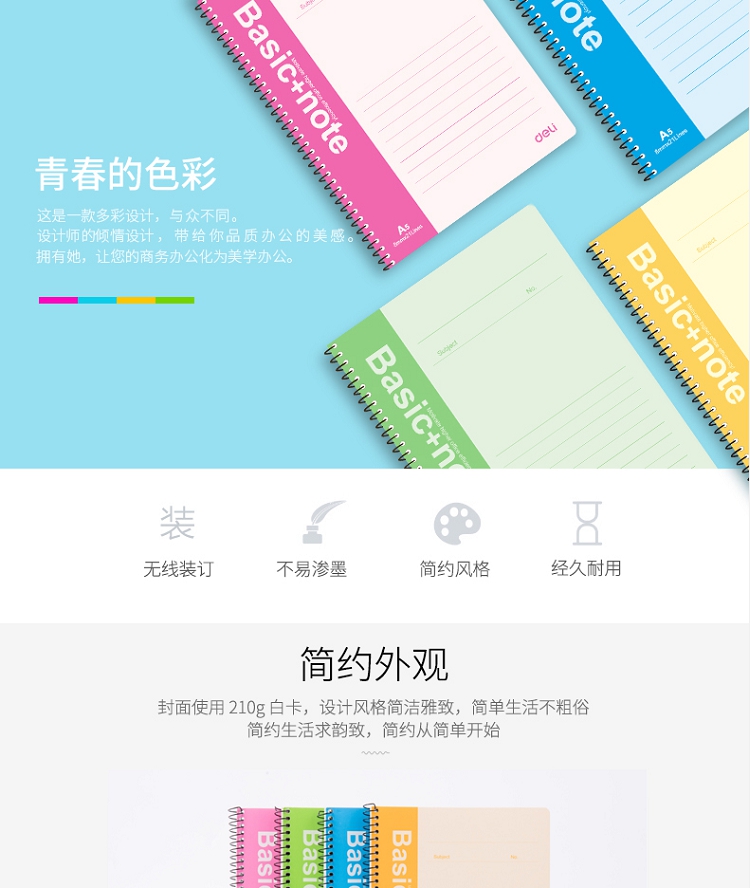 得力(deli) 7693 螺旋裝訂本 記事本 B5/60頁 6本裝