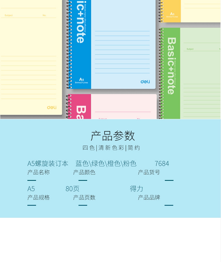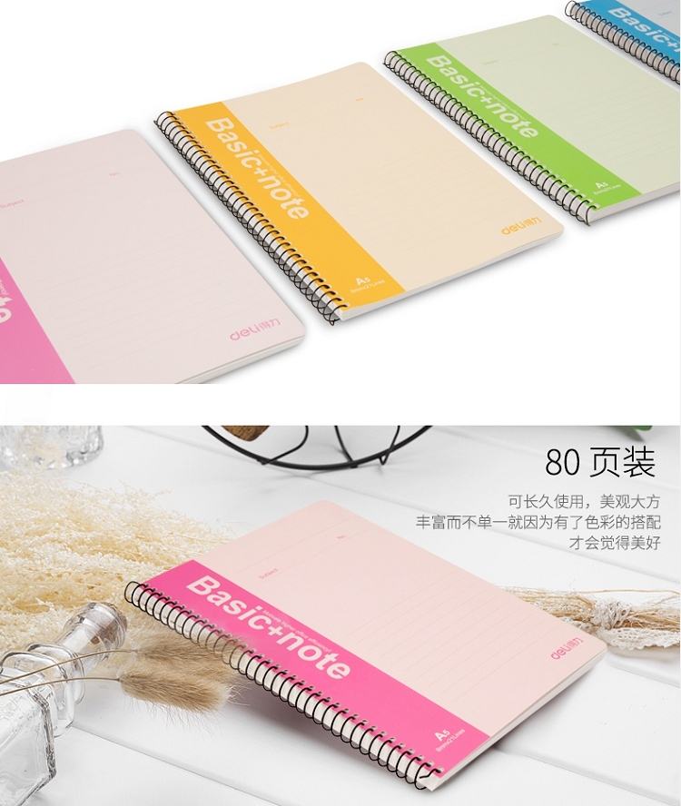 得力(deli) 7684 螺旋裝訂本 記事本 A5/80頁 6本裝