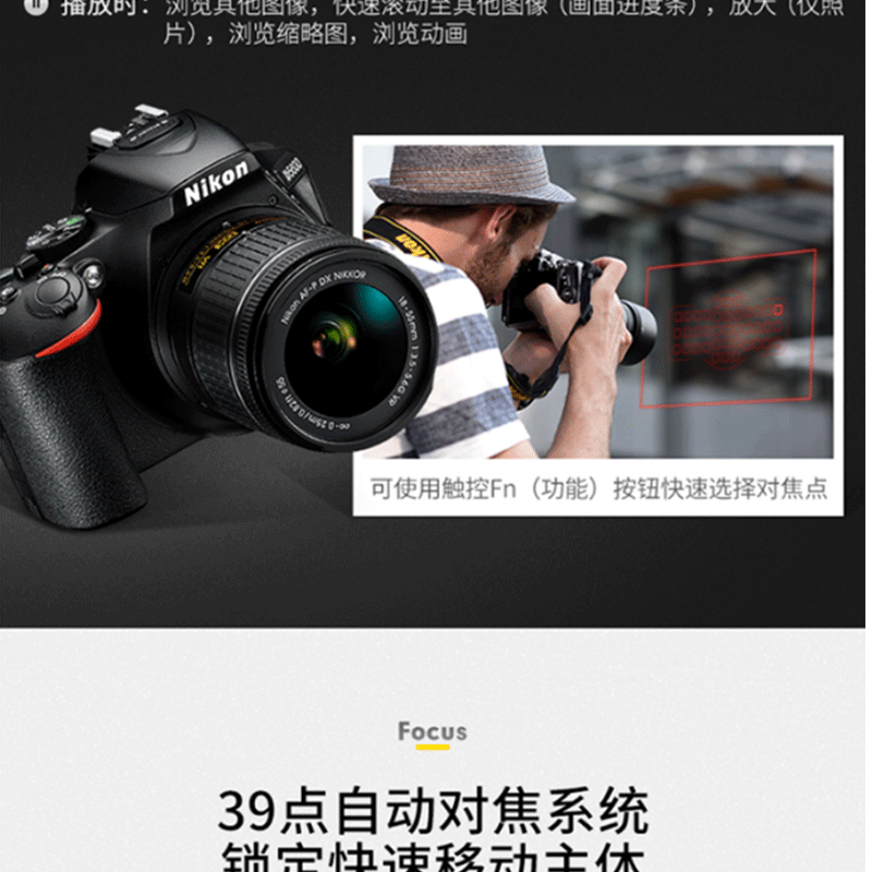 尼康(Nikon) D5600 入門單反數碼照相機(AF-P DX 尼克爾 18-55mm f/3.5-5.6G VR套機)