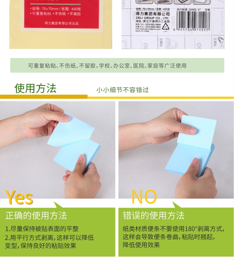 得力(deli) 9085 熒光紙百事貼/便條紙76×76mm 12本裝