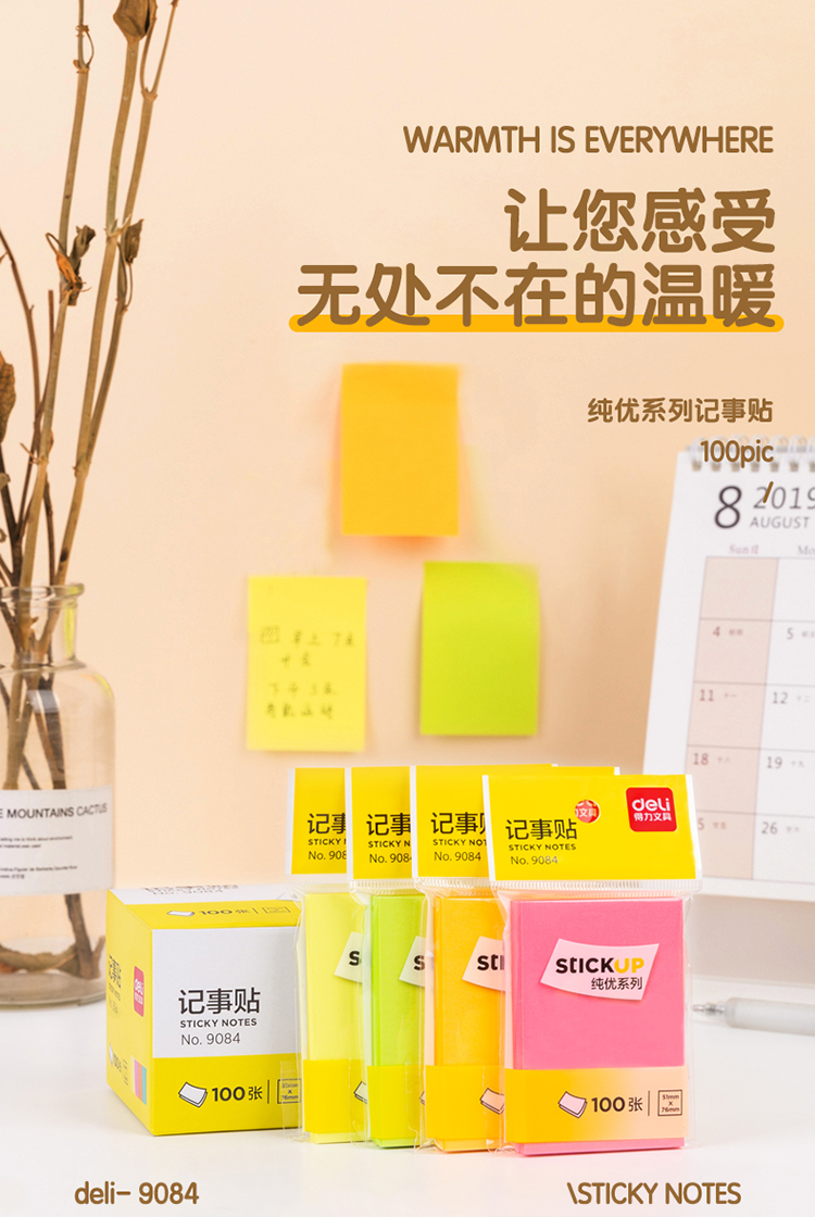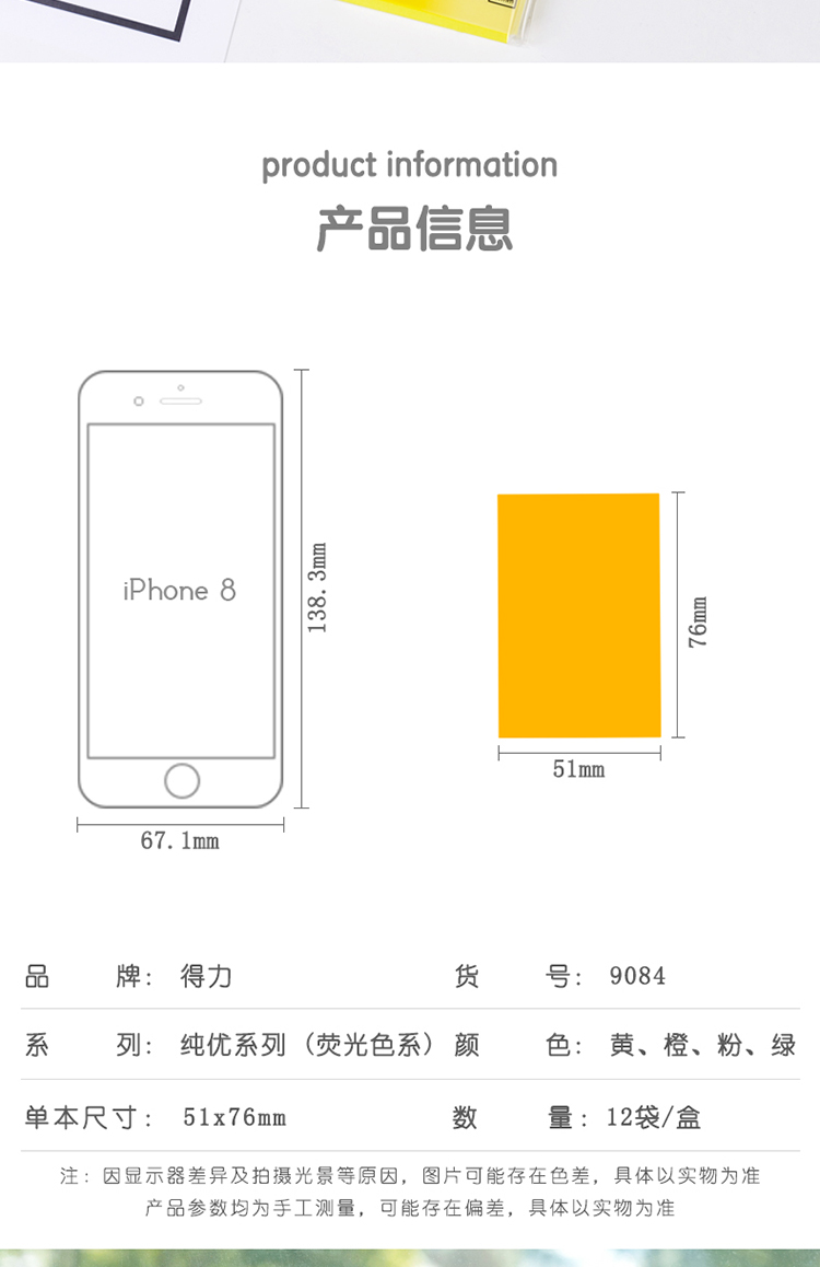得力(deli) 9084 熒光紙百事貼/便條紙76×51mm 12本裝