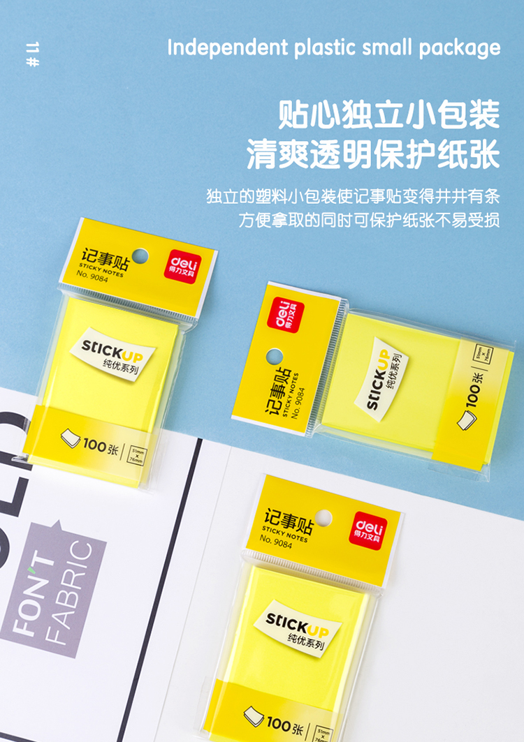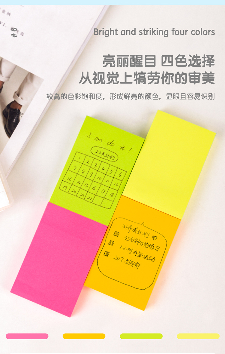 得力(deli) 9085 熒光紙百事貼/便條紙76×76mm 12本裝