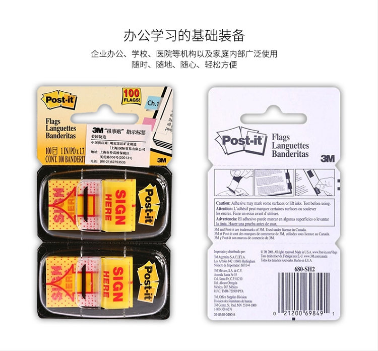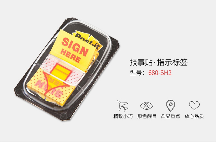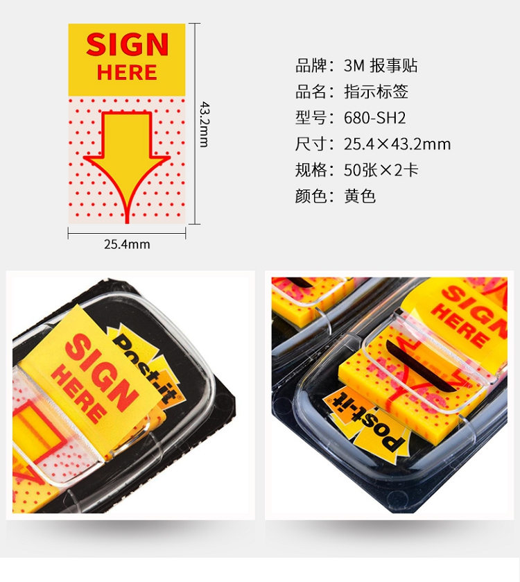 3M(Post-it) 680-SH2 指示標(biāo)簽/簽名標(biāo)簽/箭頭提示標(biāo)簽 25.4*43.2mm 100張/卡