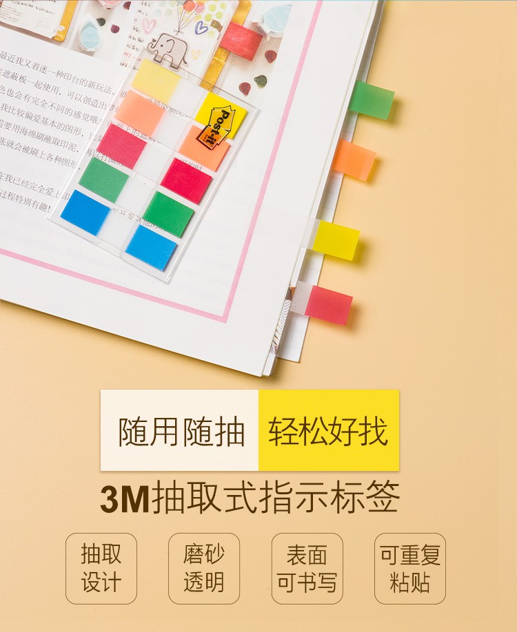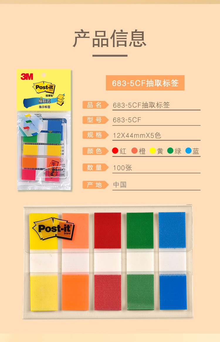 3M(Post-it) 683-5CF 透明抽取式指示標(biāo)簽 12*44mm 20張*5色/包