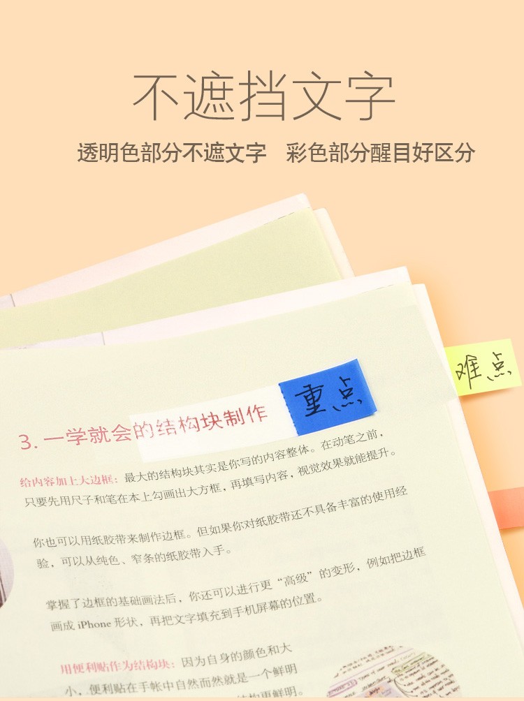 磨砂透明色,不遮蔽文字;抽取式設(shè)計(jì),使用方便!