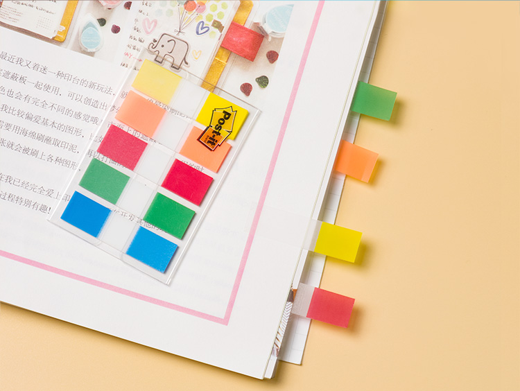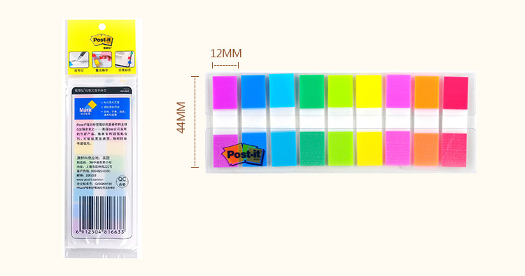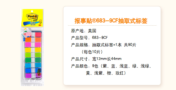 3M(Post-it) 683-9CF 透明抽取式指示標簽 12*44mm 10張*9色/包