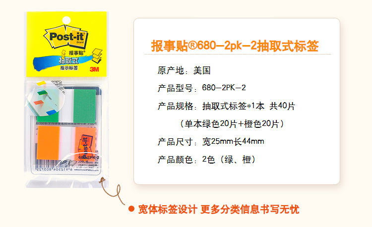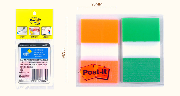 3M(Post-it) 680-2PK-2 透明指示標(biāo)簽/報(bào)事貼 綠橙 20張*2色/包