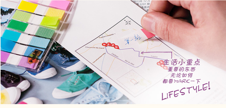 得力(deli) 9060 熒光指示標(biāo)簽/便簽條/便利貼/百事貼 44*12mm 5色*20張