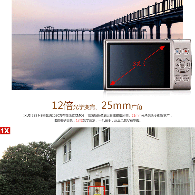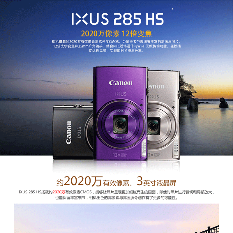 2020萬(wàn)像素 12倍光學(xué)變焦 25mm超廣角 支持Wi-Fi和NFC