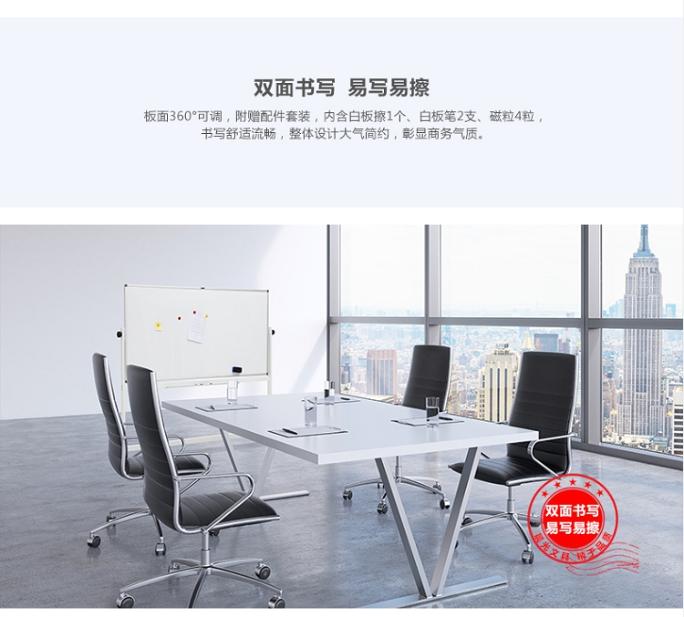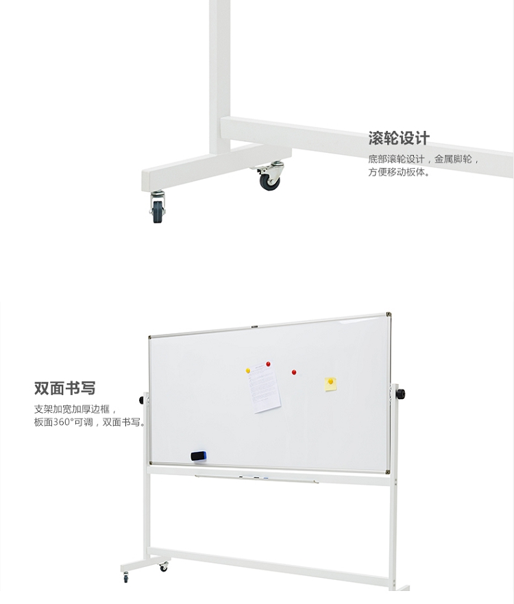雙面書寫,易寫易擦,書寫流暢,板面360°可調(diào)整體設(shè)計(jì)大氣簡約,彰顯商務(wù)氣質(zhì)
