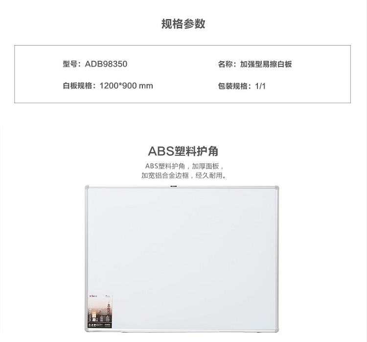 晨光(M&G) ADB98352 加強型易擦單面白板 不帶架子1800*900mm