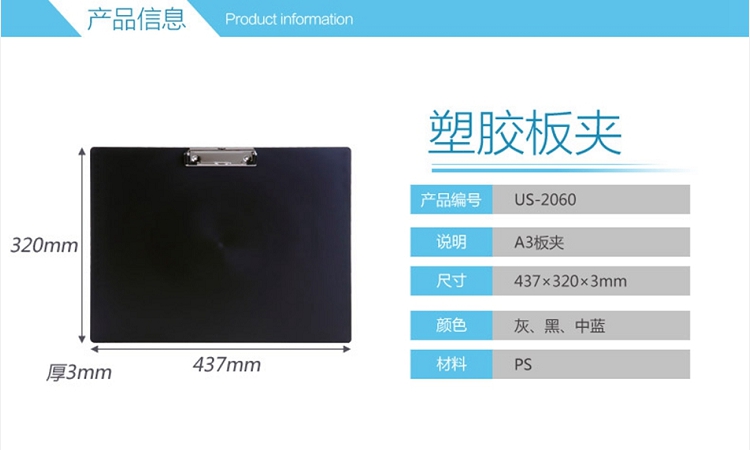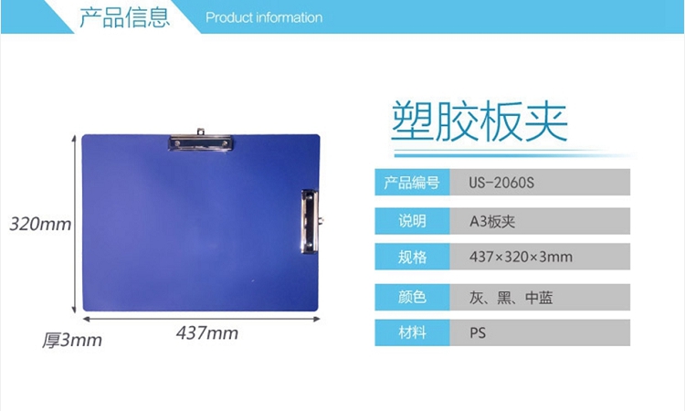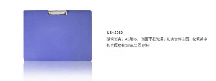 遠(yuǎn)生(USign) US-2060 A3塑料板夾 A3板夾 書(shū)寫(xiě)板夾 A3橫式板夾 雙夾資料夾 雙夾板夾 單夾板夾(藍(lán)色)