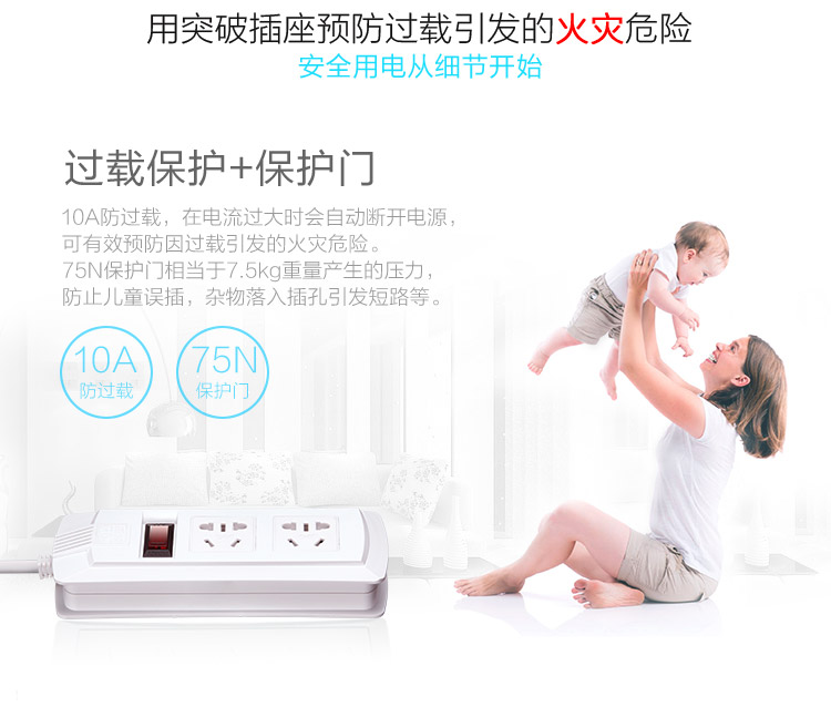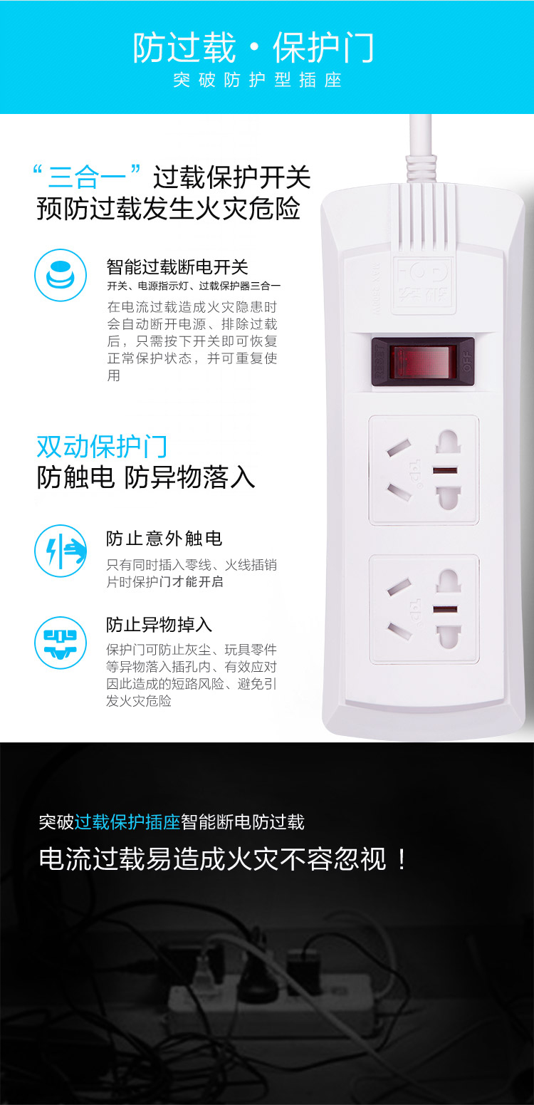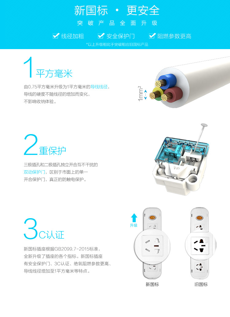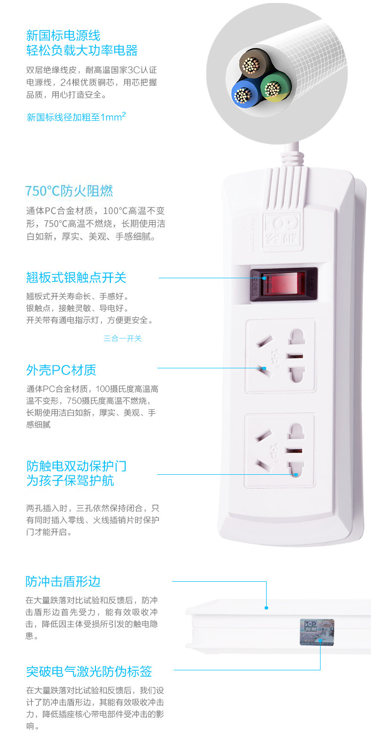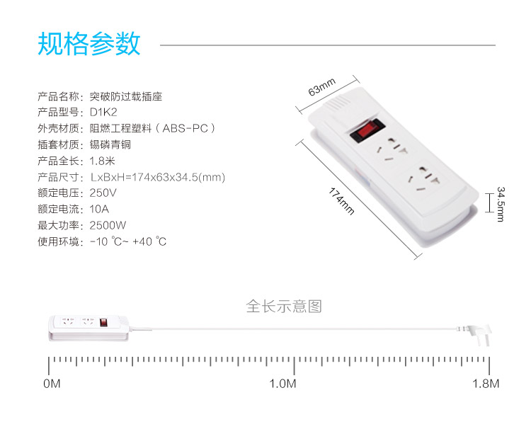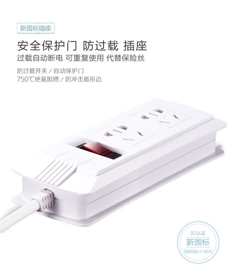 突破(TOP) 新國標(biāo)電源插座/插線板/排插/接線板(二位總控1.8米)