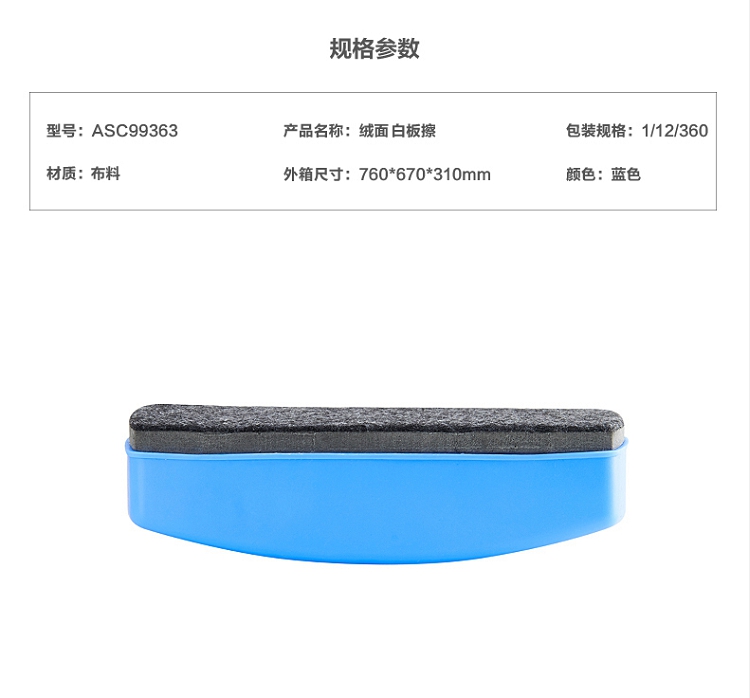 晨光(M&G) ASC99363 絨面高檔白板擦 藍(lán)色
