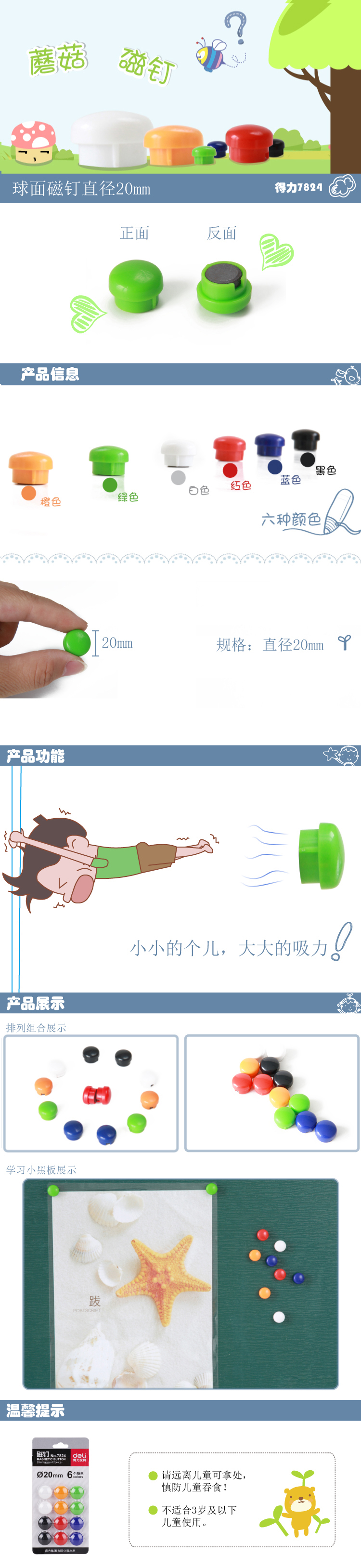 得力(deli) 7824 磁釘白板磁力 固定磁扣 小磁鐵 20mm
