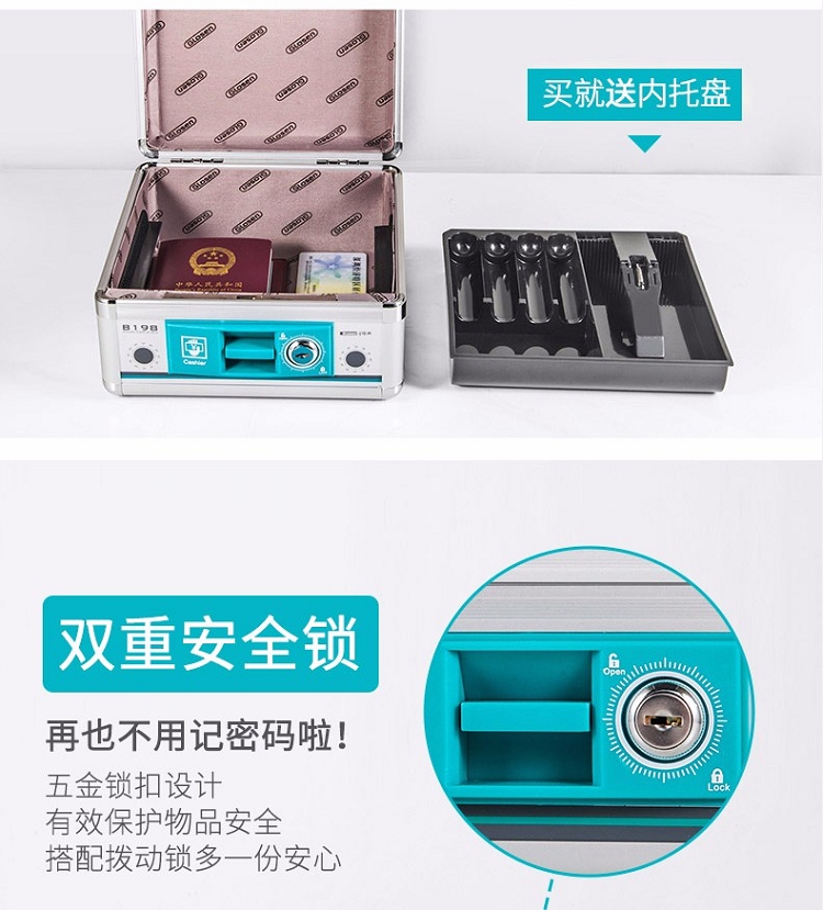 金隆興(Glosen) B598 鋁合金材質(zhì)收銀箱/手提金庫帶鎖(銀色)