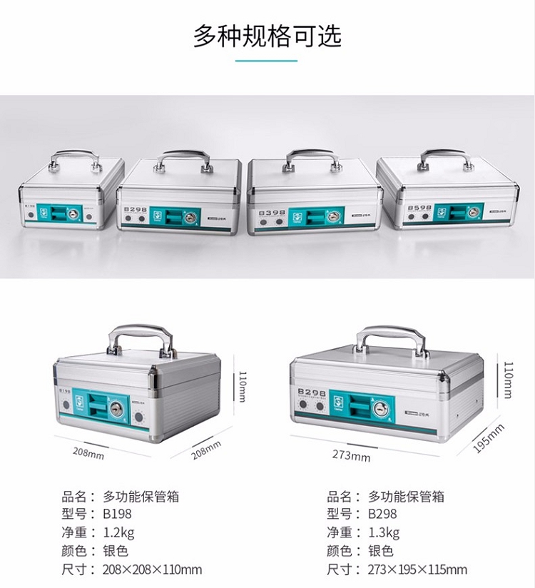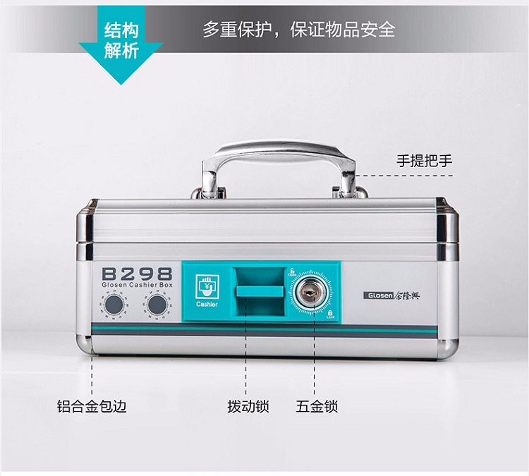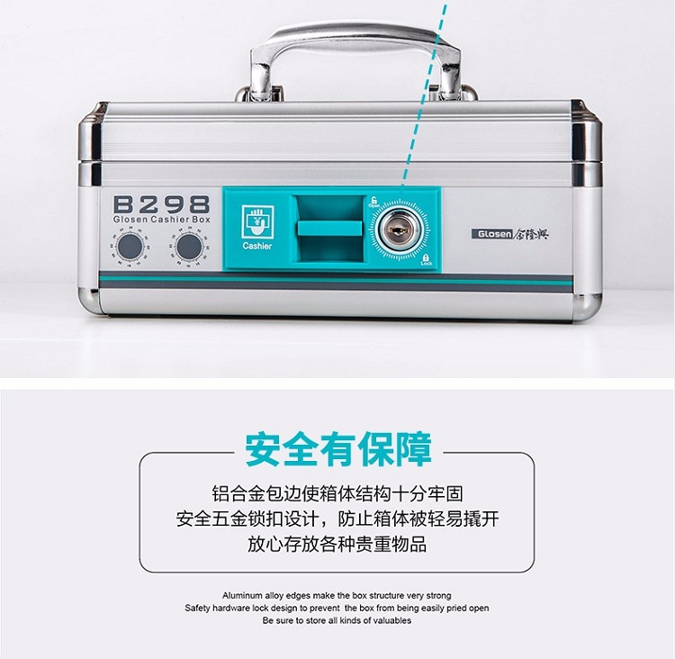 金隆興(Glosen) B398 鋁合金材質(zhì)收銀箱/手提金庫帶鎖(銀色)