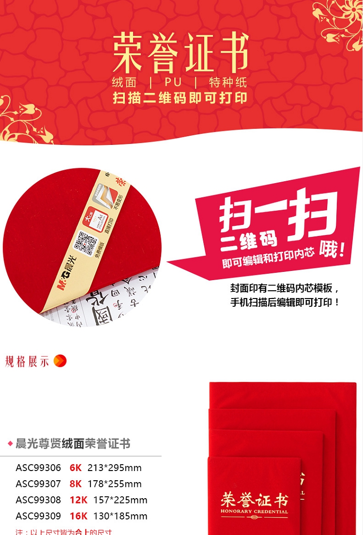 晨光(M&G) ASC99309 16K(合上尺寸130*185mm)絨面榮譽(yù)證書