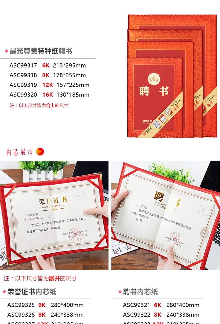 晨光(M&G) ASC99311 8k PU皮面榮譽(yù)證書 (合上尺寸178*255mm)