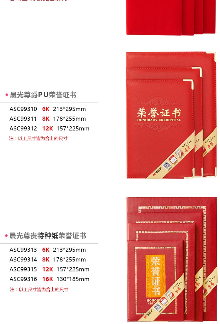 晨光(M&G) ASC99311 8k PU皮面榮譽(yù)證書 (合上尺寸178*255mm)