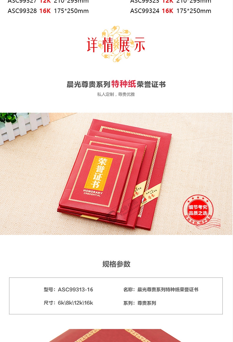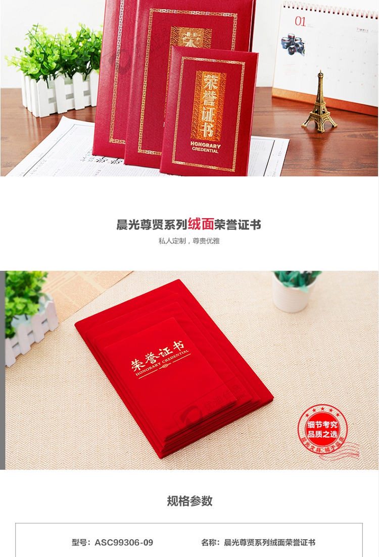 晨光(M&G) ASC99309 16K(合上尺寸130*185mm)絨面榮譽(yù)證書