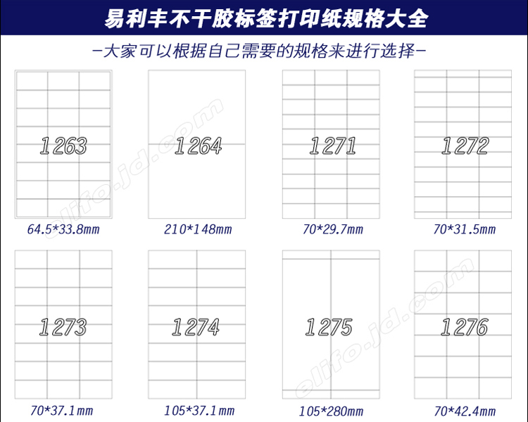 易利豐(ELIFO) A4不干膠標簽打印紙 背膠紙 小規(guī)格標簽紙 啞面 粘貼紙 黏貼紙(2419)