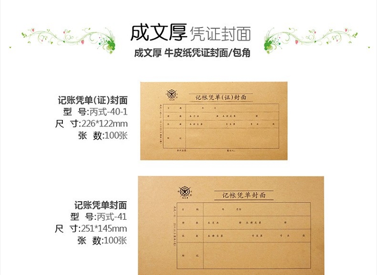 成文厚 財(cái)務(wù)用品憑證單據(jù) 記帳憑證封面丙式12.2*22.5cm 100張/包 308-40-1