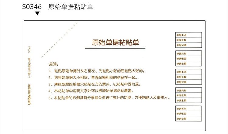 用友(UFIDA) S0346 /A4單據(jù)原始粘貼單 208*127mm 5本/包 50頁(yè)/本