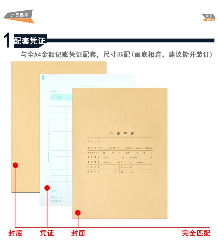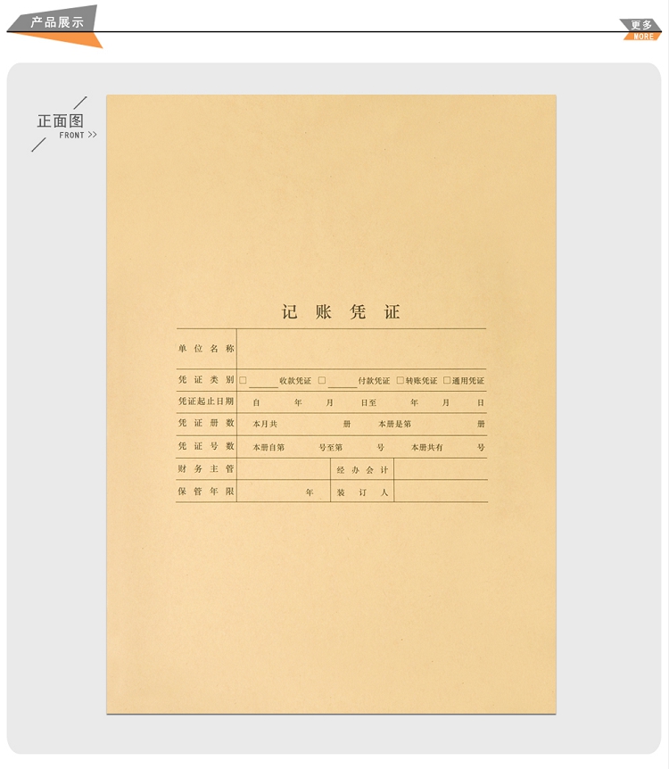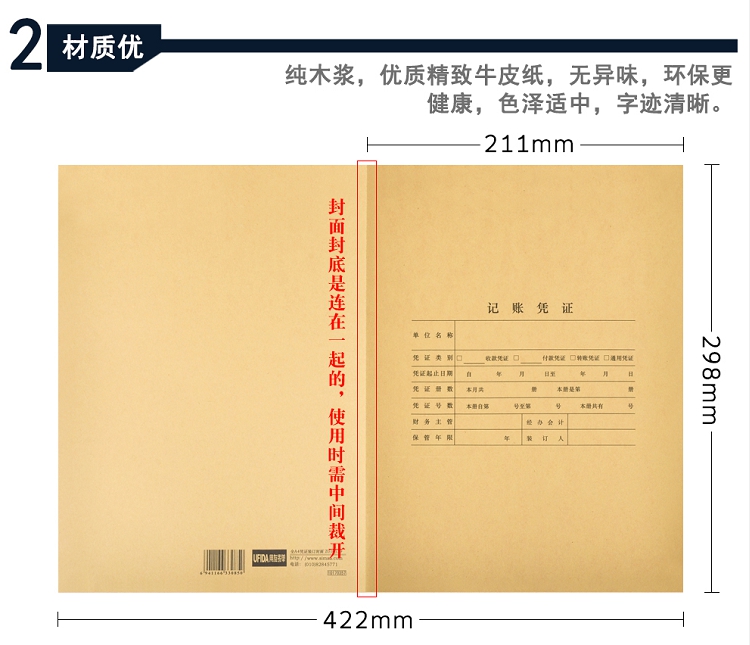 成文厚 財(cái)務(wù)用品憑證單據(jù) 記帳憑證封面丙式12.2*22.5cm 100張/包 308-40-1