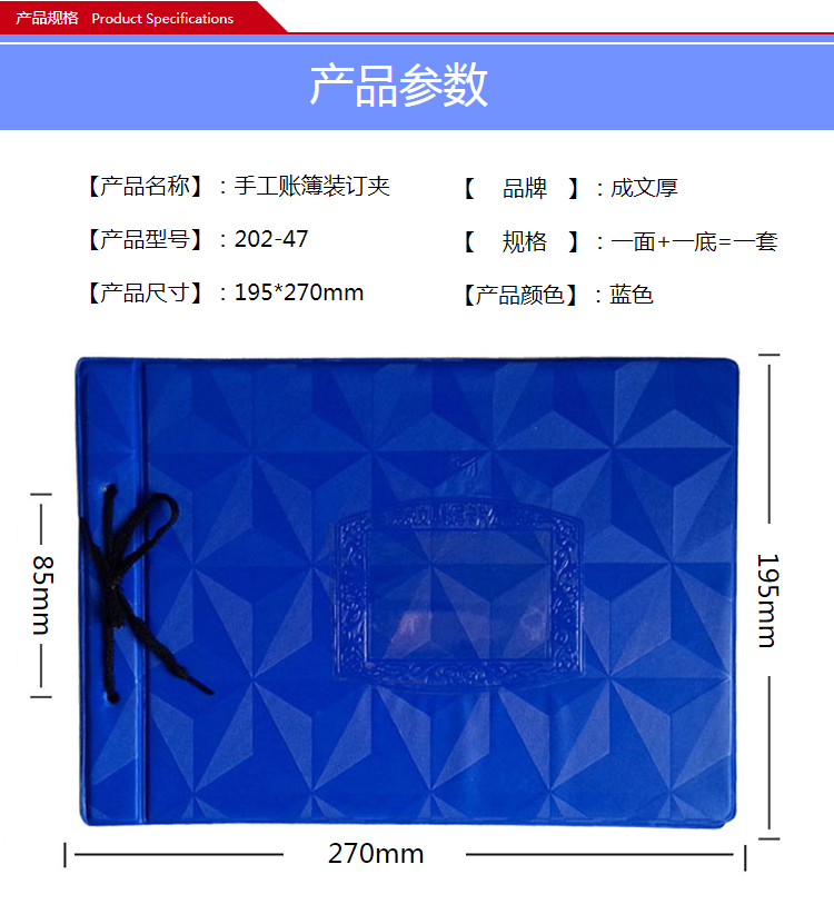 成文厚 202-47 A4賬皮 賬簿裝訂夾(270*190mm)藍(lán)色橫向