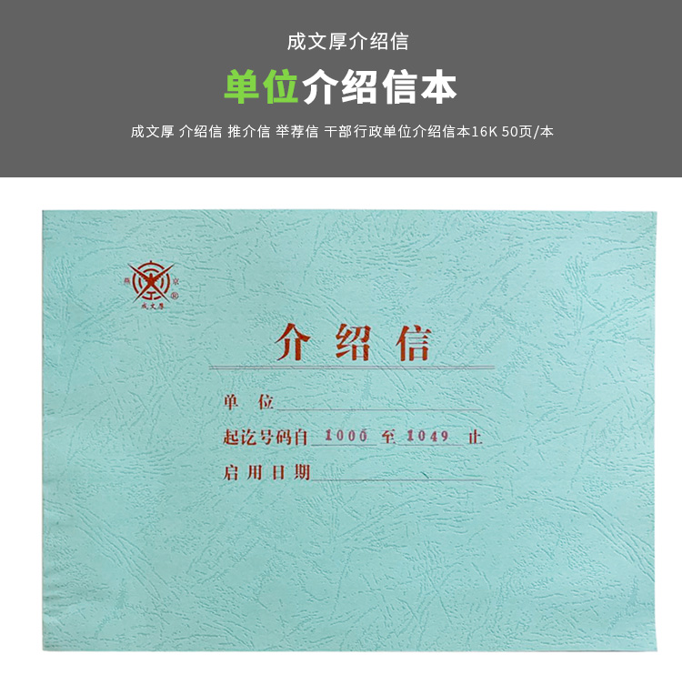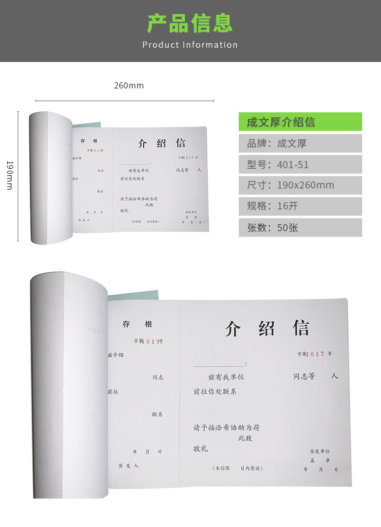 成文厚 401-51 介紹信16K(18.6*26cm)50頁/本