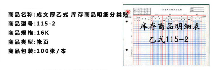 成文厚 乙式115-2 庫存商品明細(xì)分類賬賬頁 16K 100頁/包