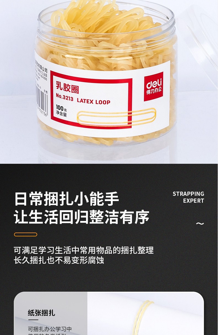 得力(deli) 3213 強(qiáng)韌性乳膠圈 橡皮筋 筒裝100g