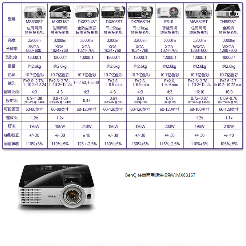 明基(BenQ) MX631ST 商住兩用 短焦投影儀 3200流明(吊裝)
