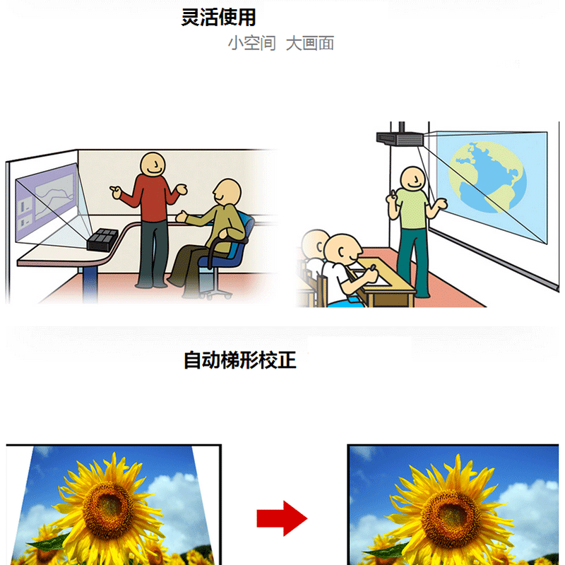 1.5m短距離內(nèi)投射出80寸大畫面,3200流明亮度及13000:1高對比度