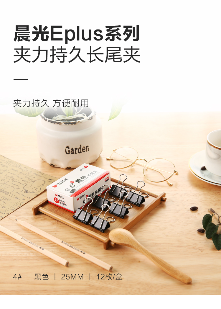 晨光(M&G) Eplus 長尾夾/長尾夾票夾 黑色(5# ABS92730/19mm 12枚/盒)