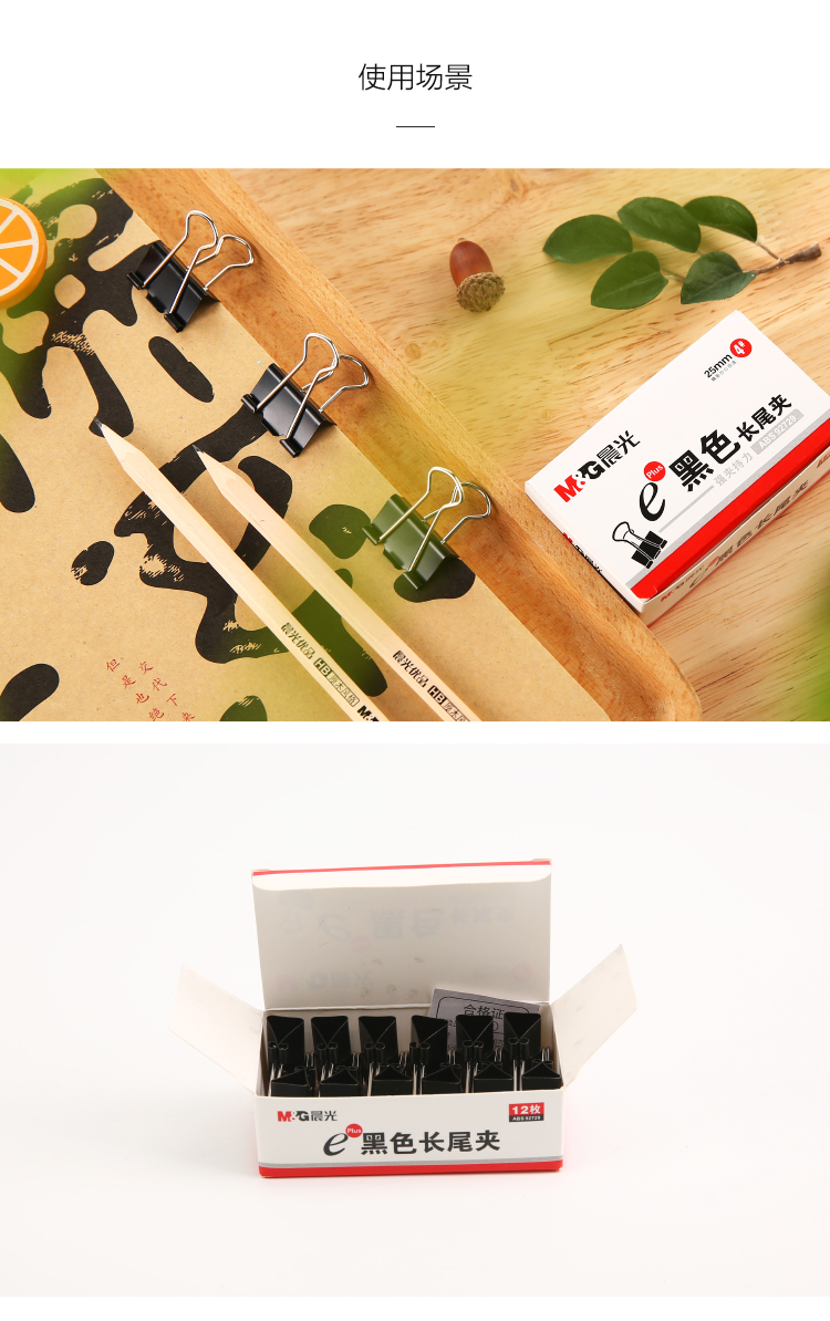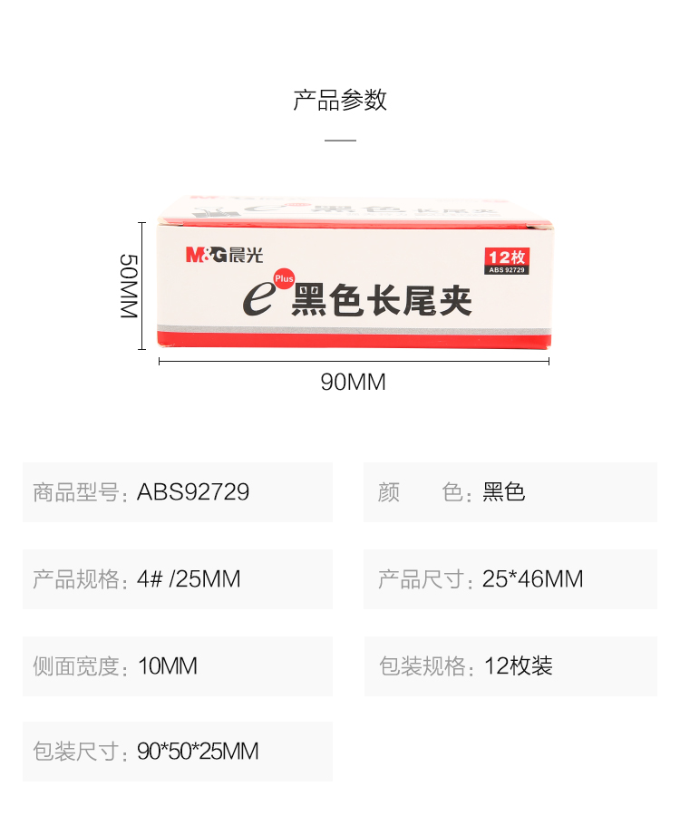 晨光(M&G) Eplus 長尾夾/長尾夾票夾 黑色(6# ABS92731/15mm 12枚/盒)