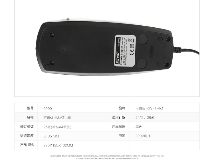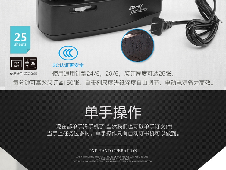 可得優(yōu)(KW-triO) 5990 12# 智能感應(yīng)電動(dòng)自動(dòng)訂書機(jī)釘針可訂25頁(yè)