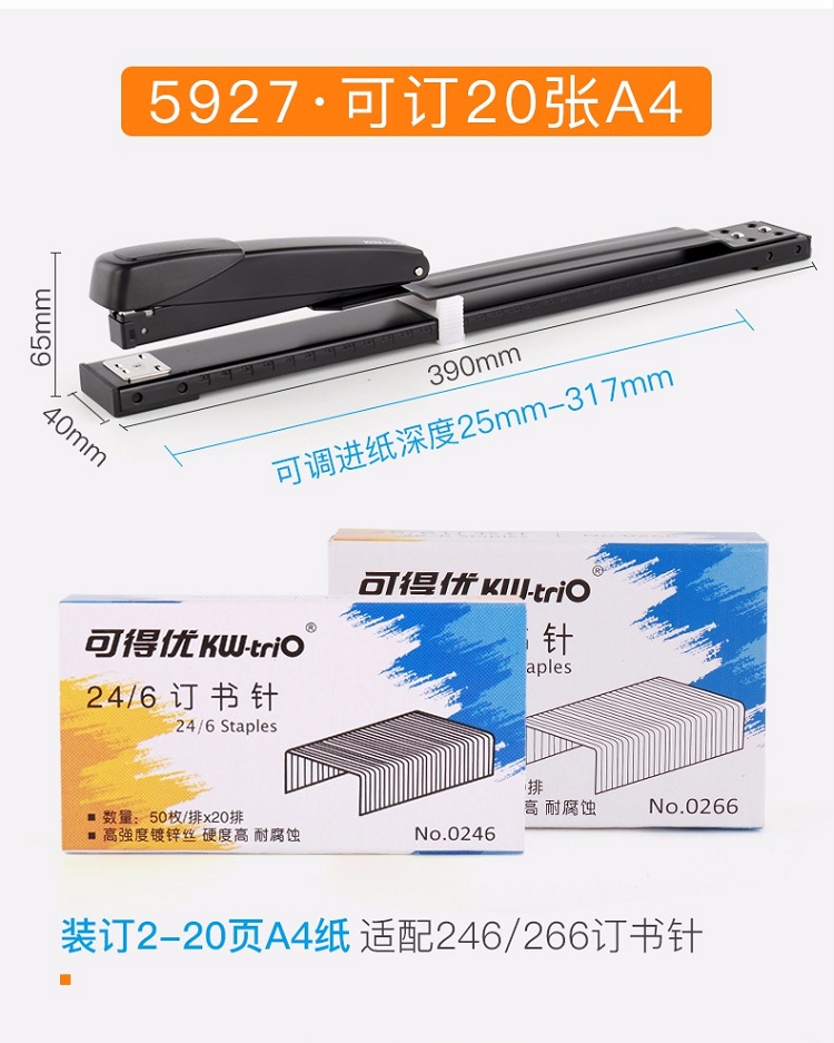 可得優(yōu)(KW-triO) 5927 訂書機(jī) 長臂訂書機(jī) 騎馬訂書機(jī) A3中縫訂書器 可訂20頁