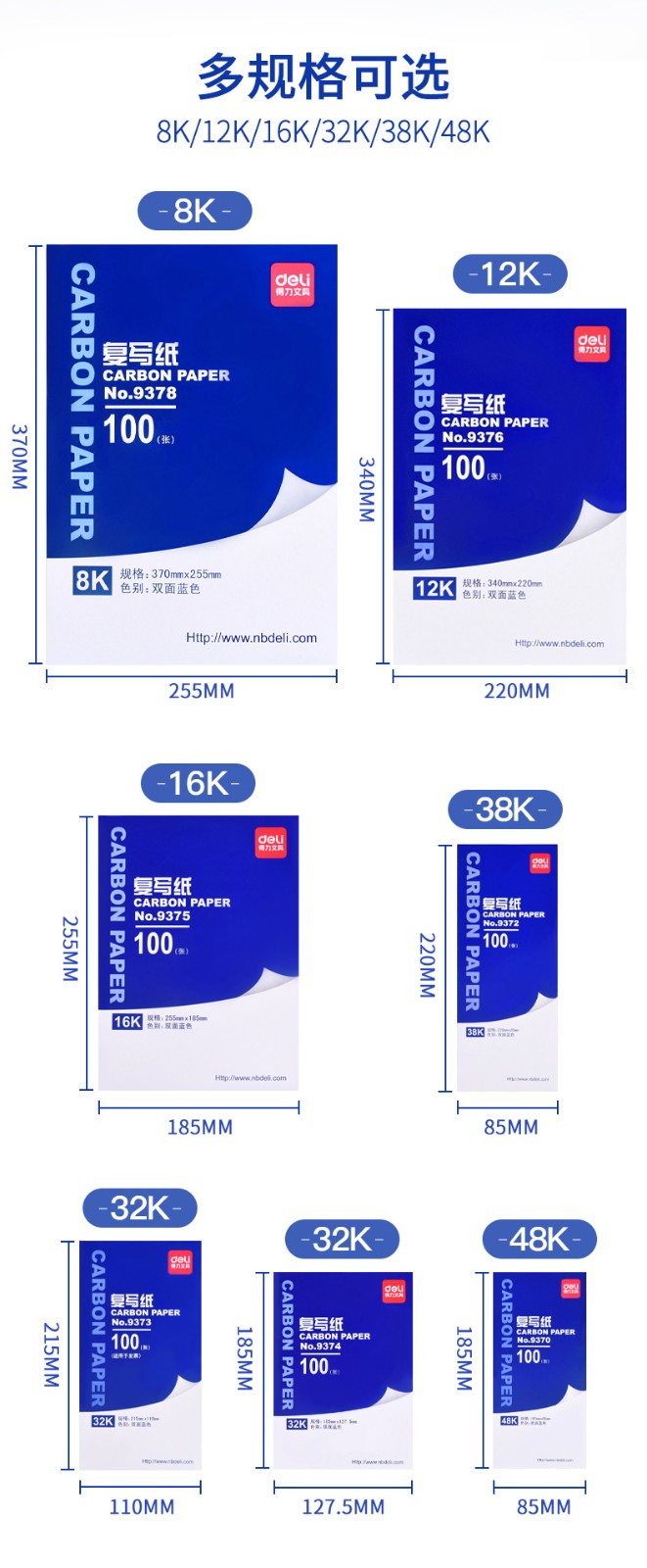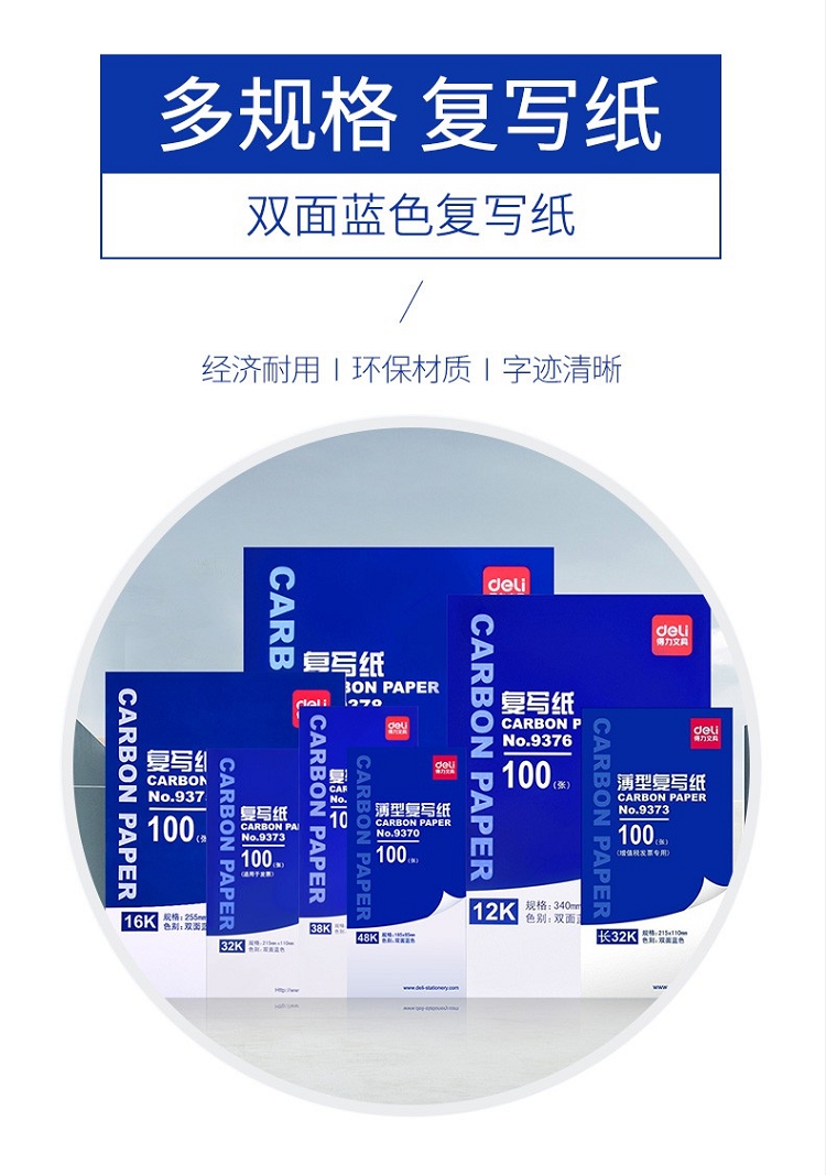得力(deli) 9375 A4耐用薄型復(fù)寫(xiě)紙(25.5×18.5)16K 藍(lán)色