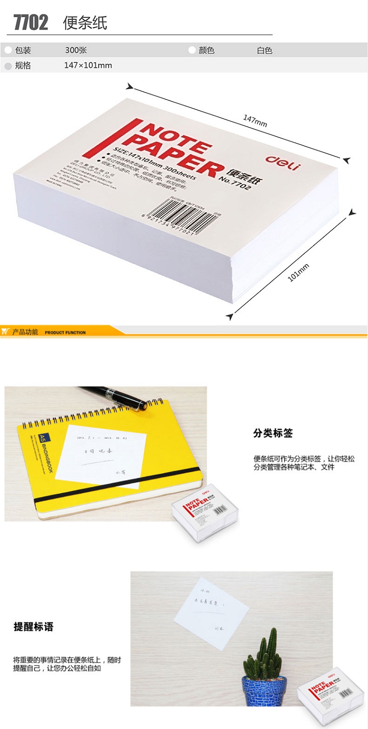 得力(deli) 7602 便簽紙/便條紙(帶盒)147×101mm