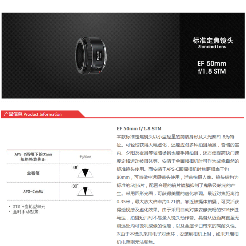 佳能(Canon) EF 50mm f/1.8 STM 標準定焦鏡頭